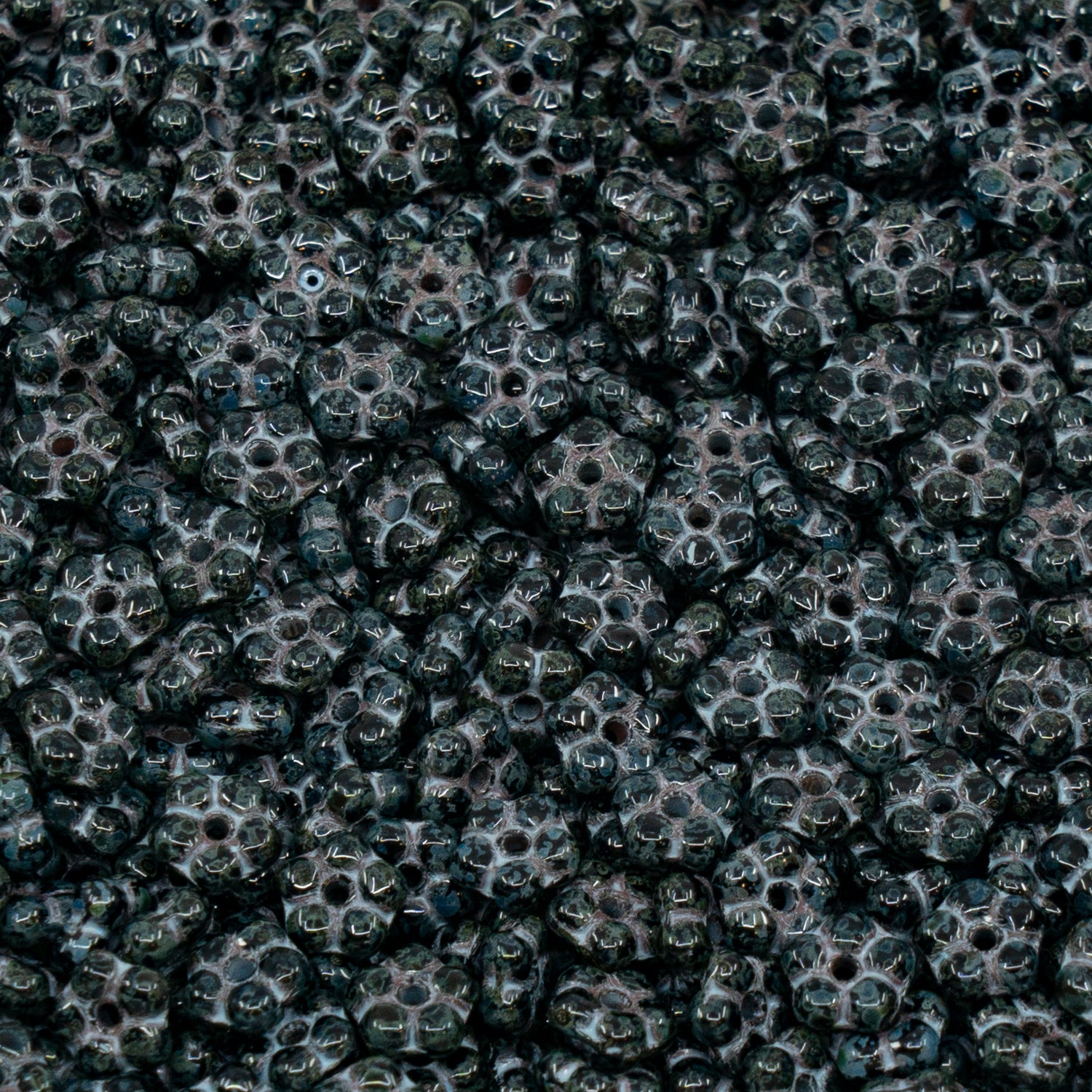 アウトレット 250g 忘れな草ビーズ、5 x 5 mm、ブラックトラバーチンライトブルーライン入り (23980-86800-54308)、ガラス、チェコ共和国