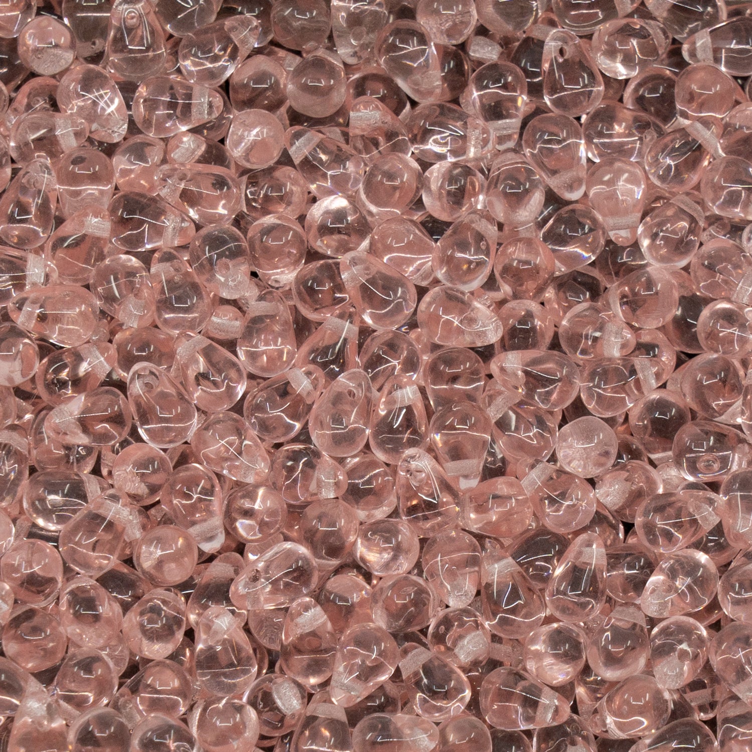 アウトレット 250g ドロップビーズ、4 x 6 mm、透明ピンク (70110)、ガラス、チェコ共和国