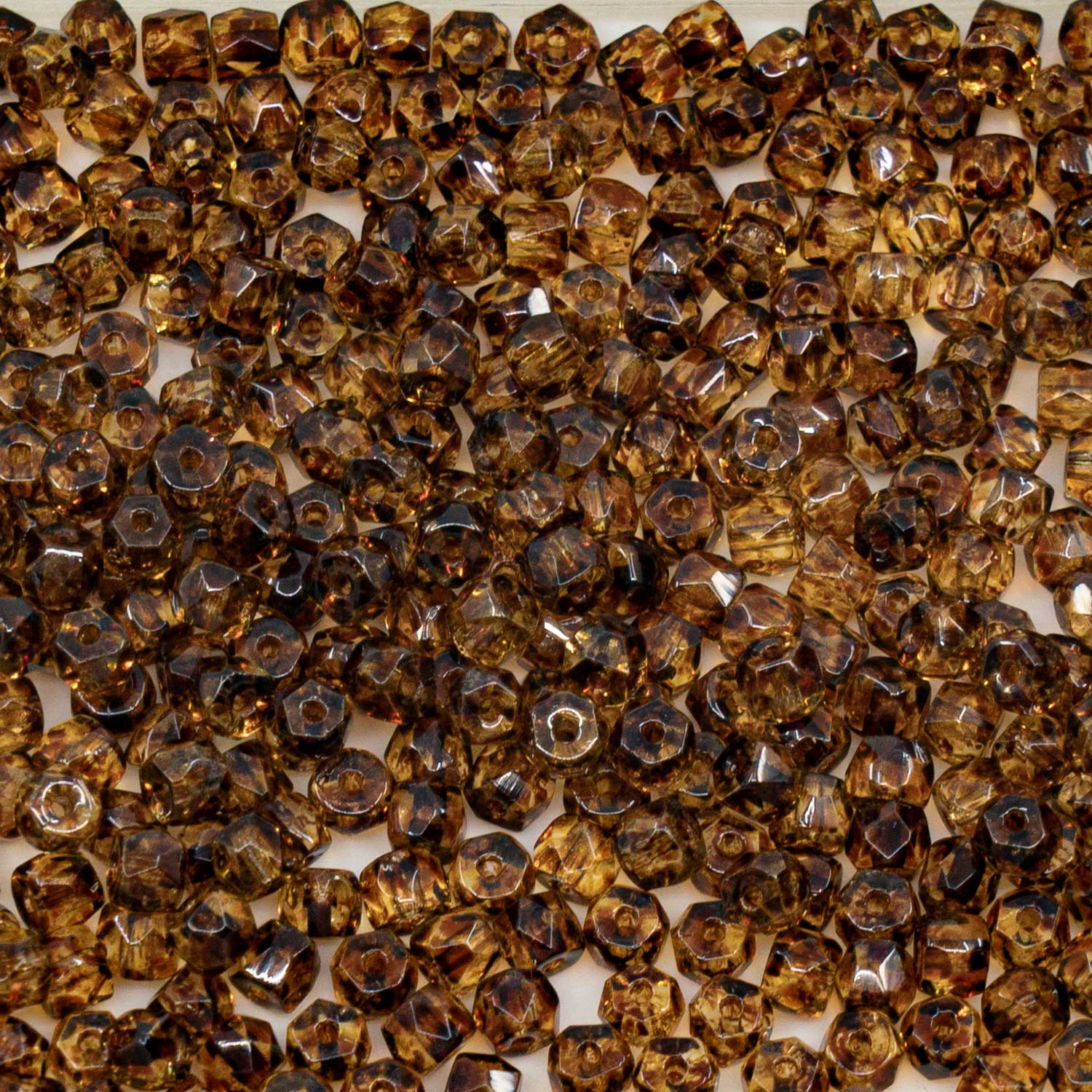 アウトレット 250g ファセットロンデル ファイアポリッシュビーズ、3 x 4 mm、クリスタルトラバーチン (00030-81800)、ガラス、チェコ共和国