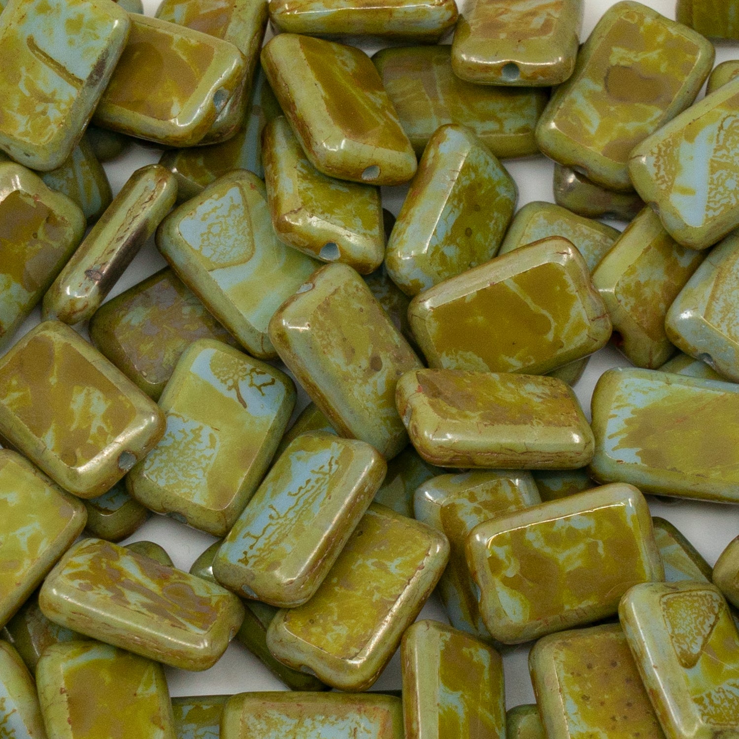 アウトレット 250g テーブルカット長方形ビーズ、12 x 8 mm、不透明ライトブルートラバーチン(33010-86800)、ガラス、チェコ共和国