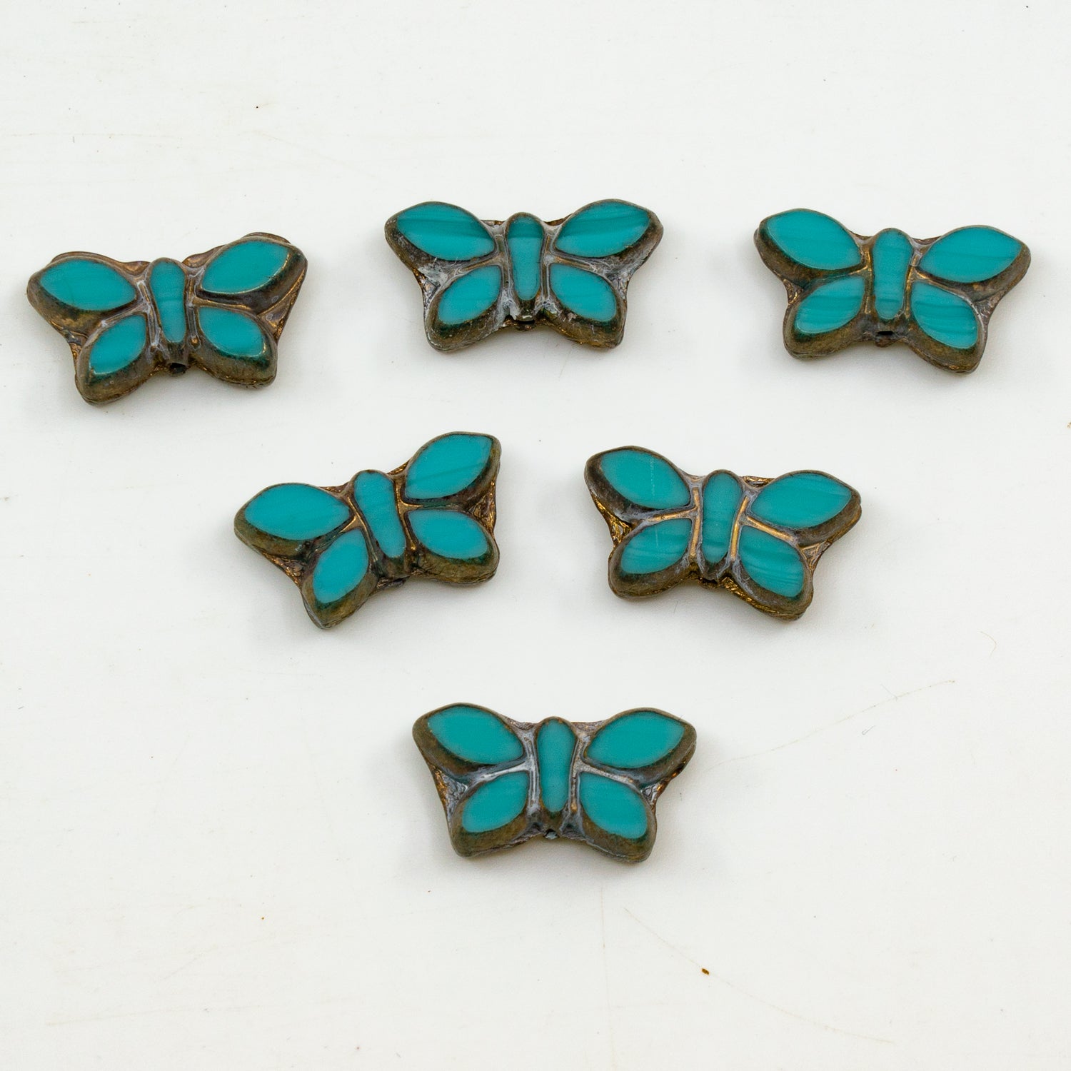 アウトレット 250g テーブルカットバタフライビーズ、11 x 20 mm、ターコイズブラス(63130-90215)、ガラス、チェコ共和国