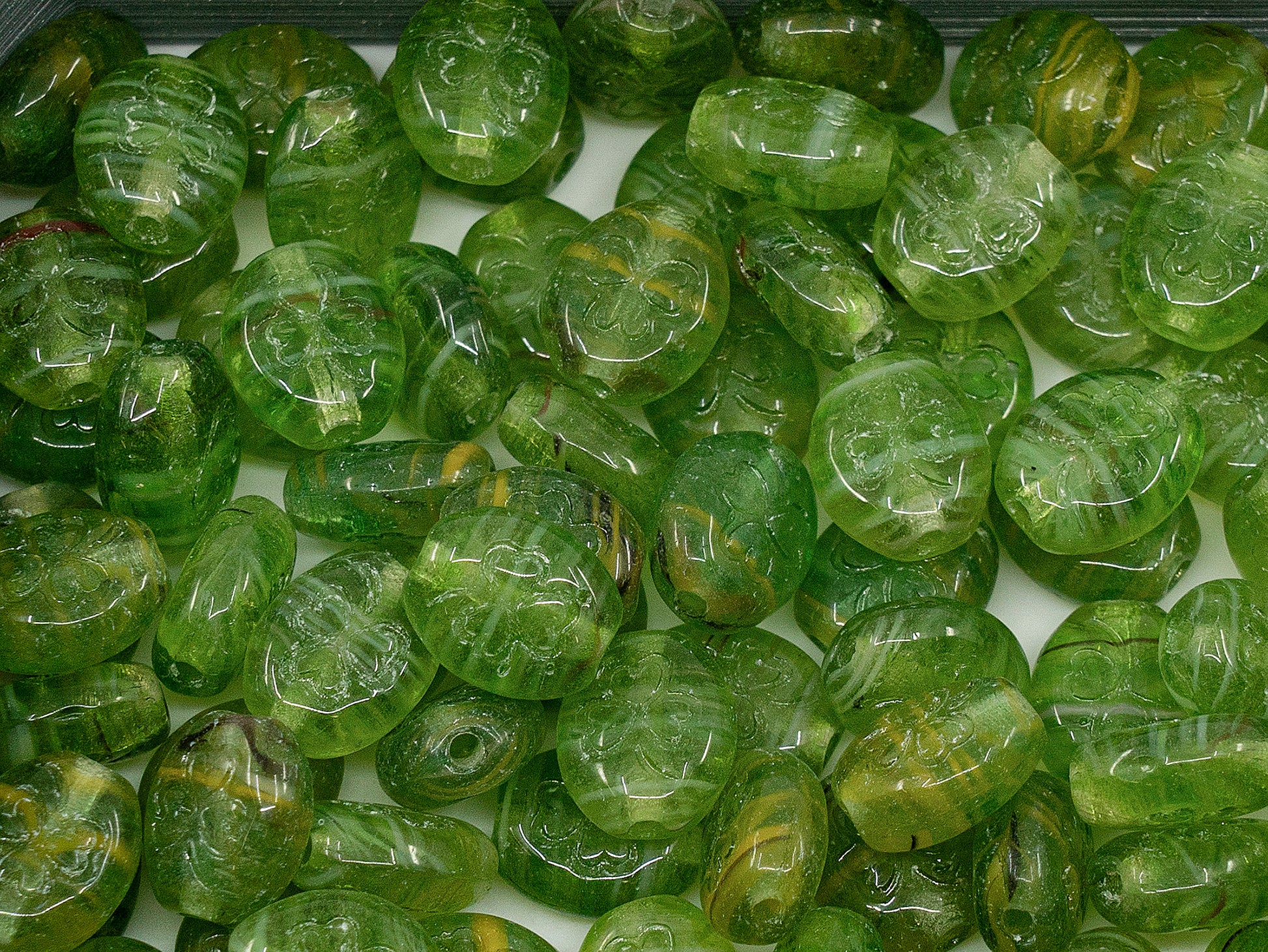 アウトレット シャムロック オーバルビーズ、10x8 mm、ガラス、チェコ共和国