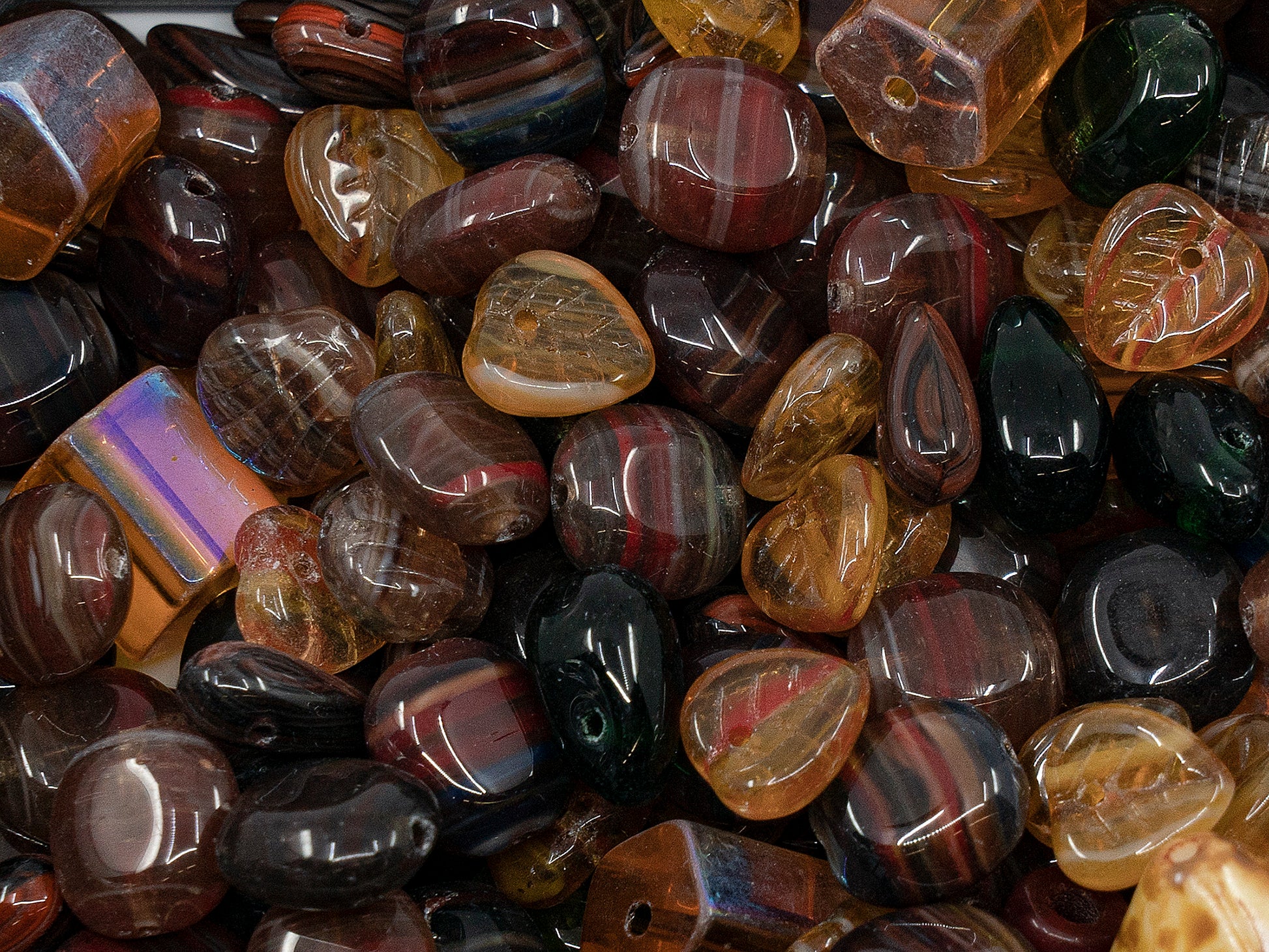 チェコガラスを使用した手作りのランプワークビーズ。形や色は実に多種多様で、2万点以上。