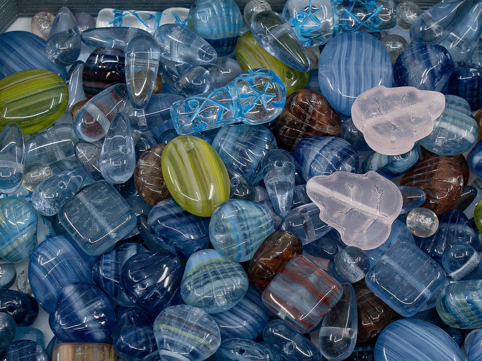 チェコガラスを使用した手作りのランプワークビーズ。形や色は実に多種多様で、2万点以上。