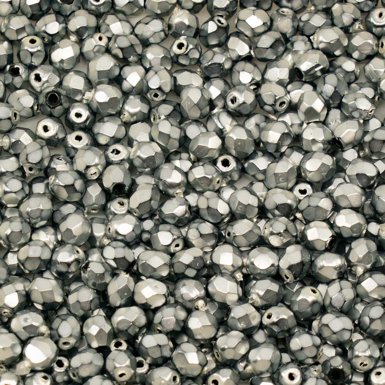 アウトレット ファセットラウンドファイアポリッシュビーズ、6 x 6 mm、ブラックメタリックシルバー(23980-72101)、ガラス、チェコ共和国
