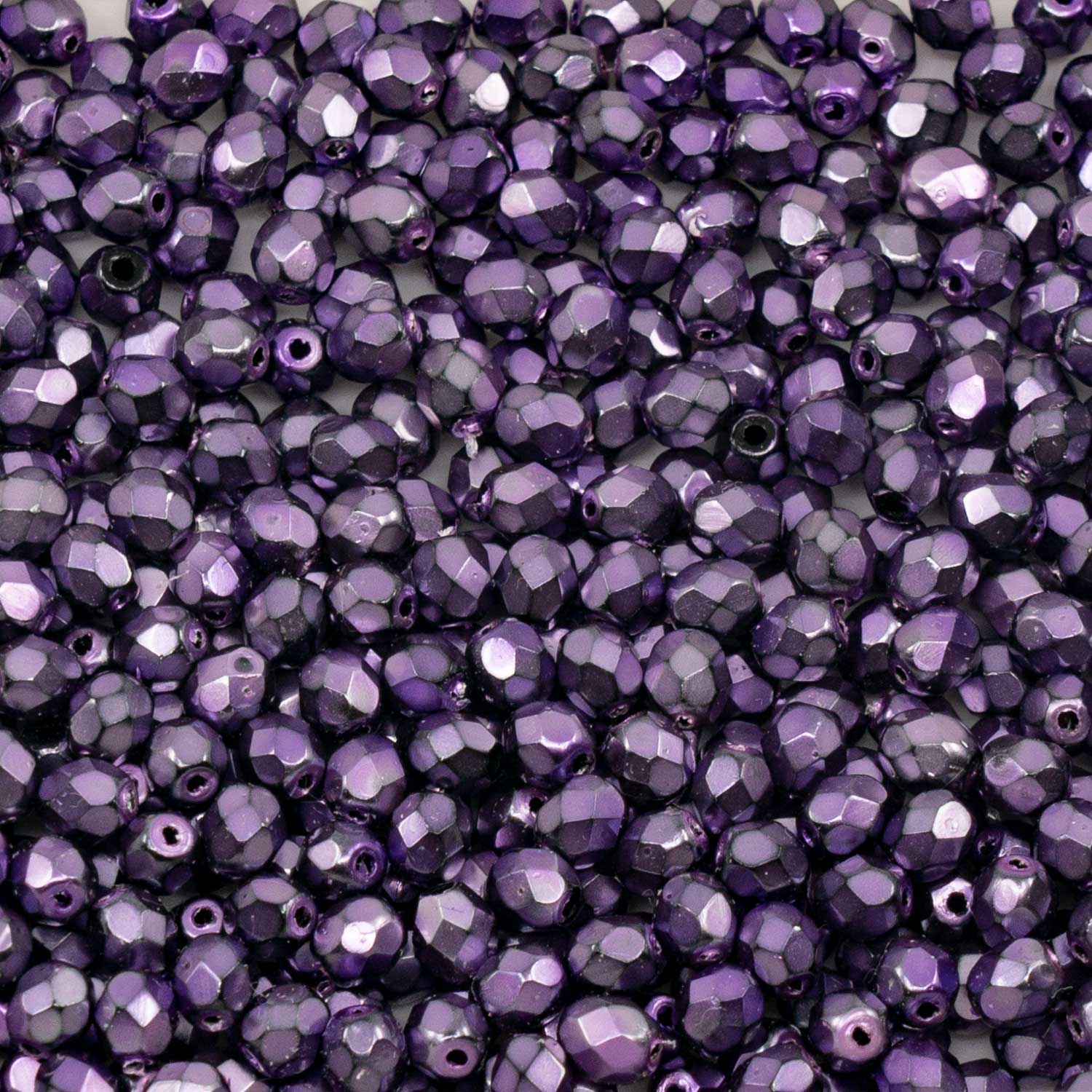 アウトレット ファセットラウンドファイアポリッシュビーズ、6 x 6 mm、ブラックメタリックパープル(23980-72122)、ガラス、チェコ共和国