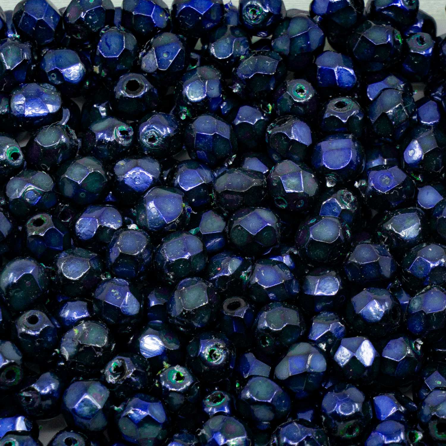 アウトレット ファセットラウンドファイアポリッシュビーズ、6 x 6 mm、ブラックメタリックダークブルー(23980-72166)、ガラス、チェコ共和国