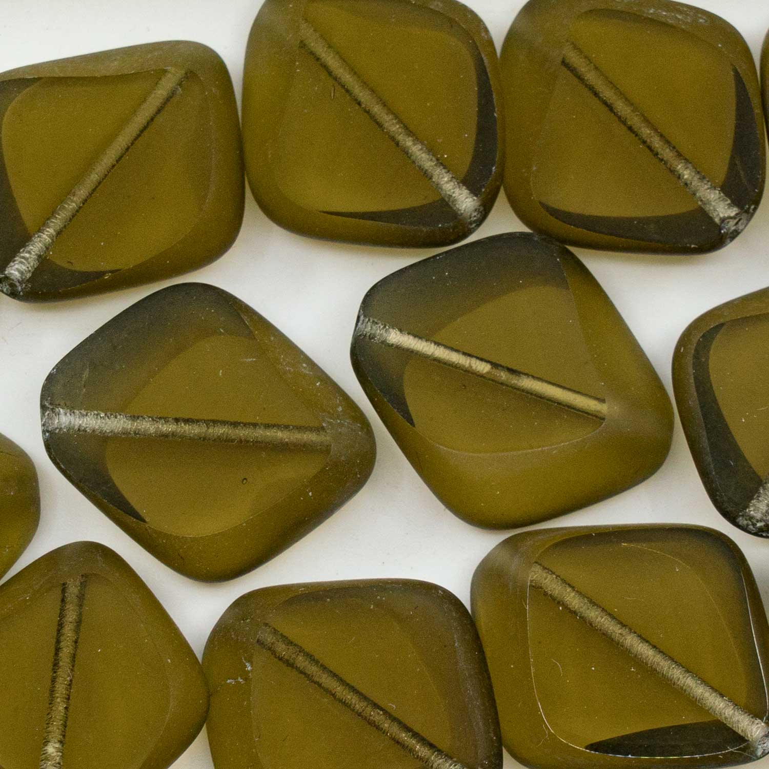 アウトレット 250g テーブルカット ストーンライクビーズ、24 x 20 mm、透明グリーンマット (00030-81800)、ガラス、チェコ共和国