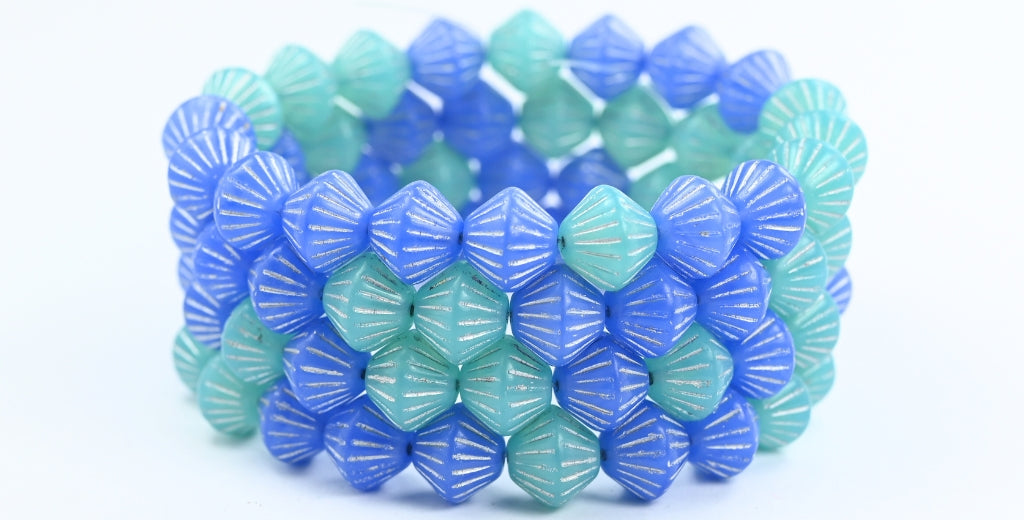 ランタンバイコーンプレスガラスビーズ、カラーミックスカラー1シルバーライン(COLOR-MIX-1-54201)、ガラス、チェコ共和国