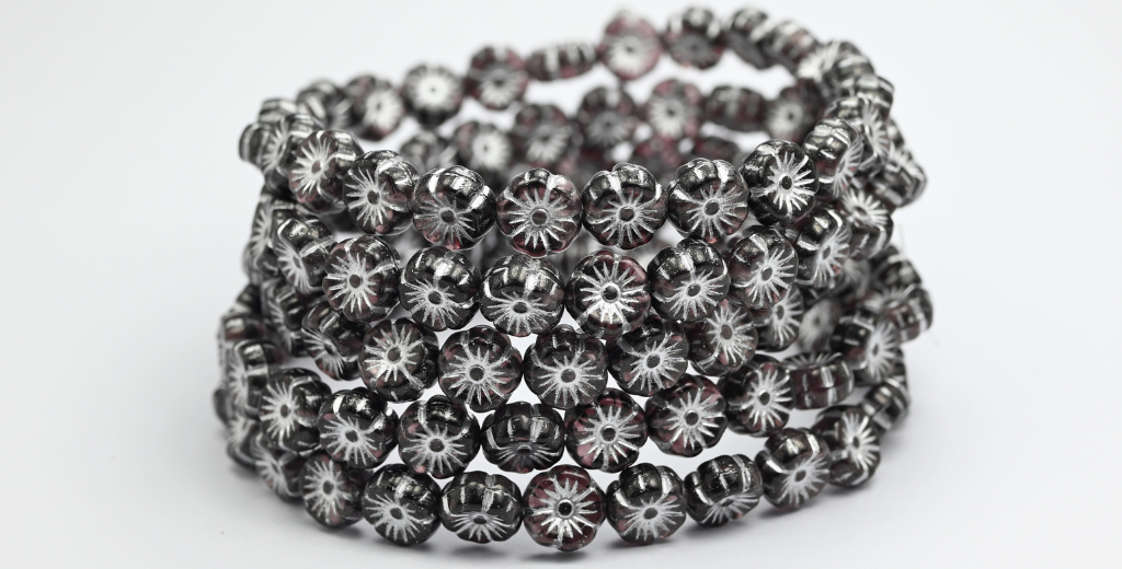 ハワイアンフラワー プレスガラスビーズ、アメジストシルバーライン(20082002-54201)、ガラス、チェコ共和国