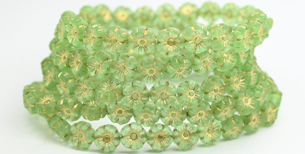 ハワイアンフラワー プレスガラスビーズ 透明グリーンゴールドライン (50500FM-54202) ガラス製 チェコ共和国