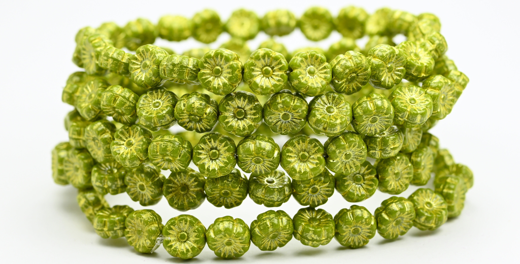 ハワイフラワープレスガラスビーズ、グリーン 54320 (53420-54320)、ガラス、チェコ共和国 ~ STRANDED