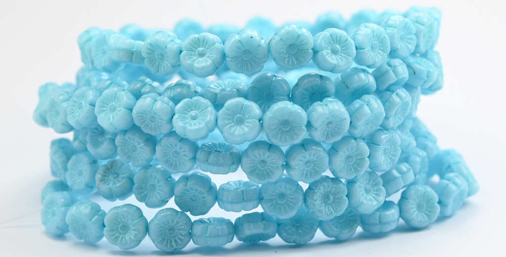 ハワイアンフラワー プレスガラスビーズ ターコイズライトブルーライン入り (64000-54308) ガラス製 チェコ共和国 ~ STRANDED