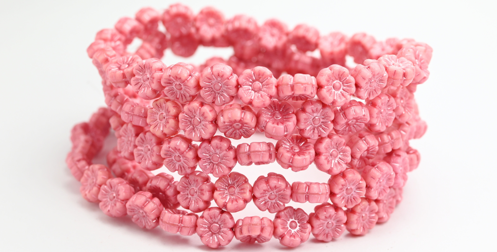 ハワイアンフラワー プレスガラスビーズ 不透明ピンク ピンクライン入り (76016B-54321) ガラス製 チェコ共和国