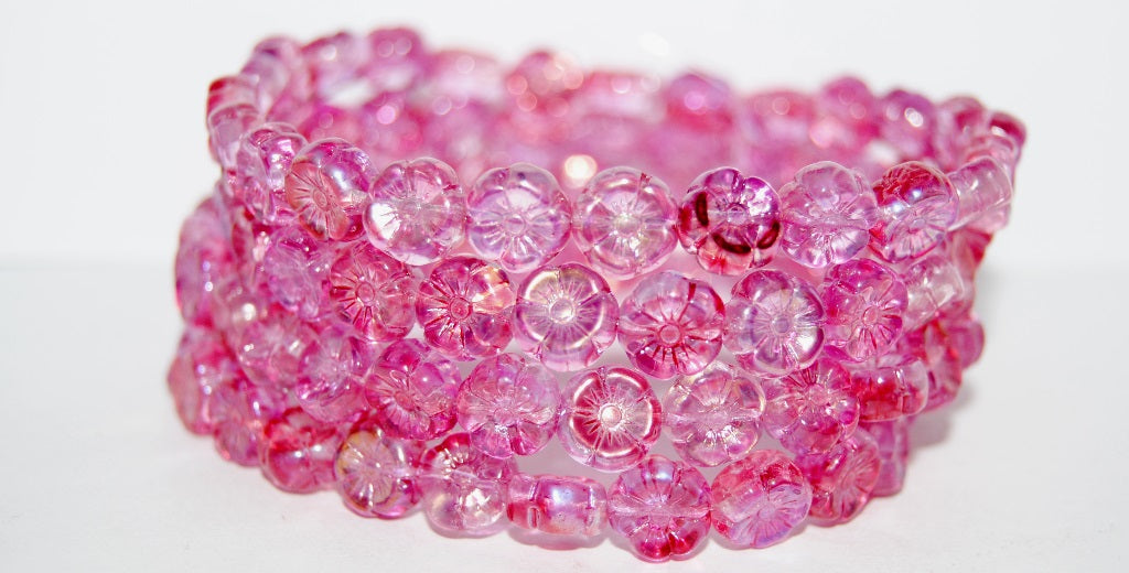 ハワイの花の押しガラスビーズ、クリスタル光沢レッドピンク(00030-48120)、ガラス、チェコ共和国