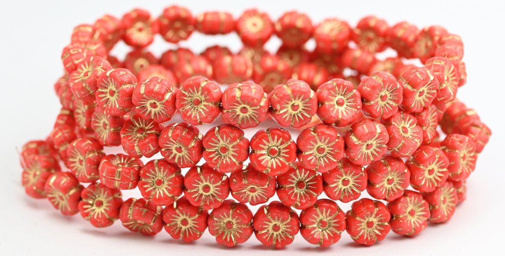 ハワイの花の押しガラスビーズ、レッドゴールドライン(93190-54202)、ガラス、チェコ共和国