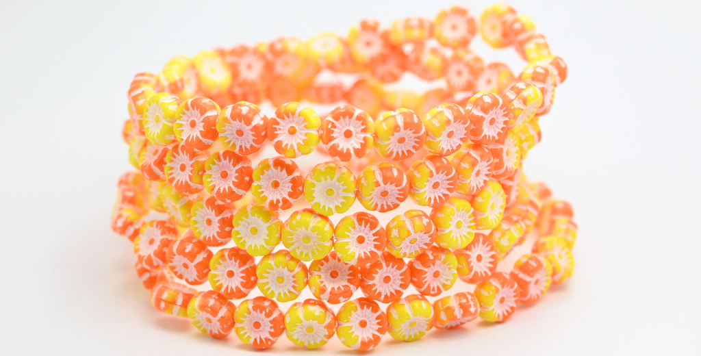 ハワイアンフラワー プレストガラスビーズ、931483120 ホワイトライン入り (931483120-46401)、ガラス、チェコ共和国