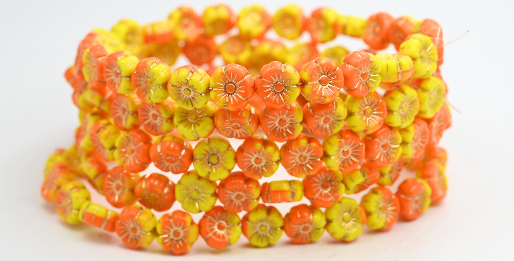 ハワイアンフラワー プレスガラスビーズ、931483120 ゴールドライン (931483120-54202)、ガラス、チェコ共和国