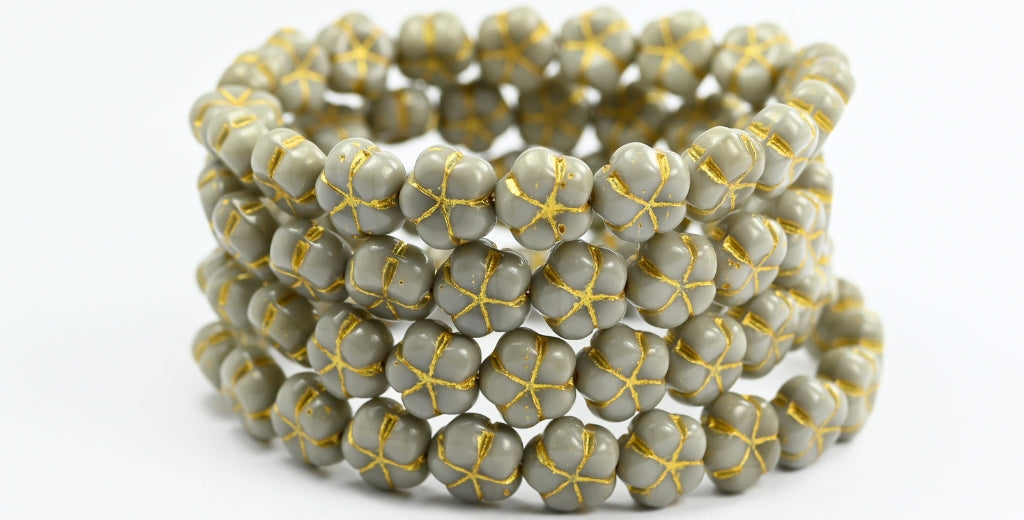 5枚の花びらの花の押しビーズ、不透明グレー 54202S (43010-54202S)、ガラス、チェコ共和国 ~ STRANDED