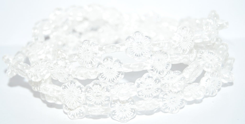 花の押しガラスビーズ、クリスタルホワイトライン入り(00030-46401)、ガラス、チェコ共和国