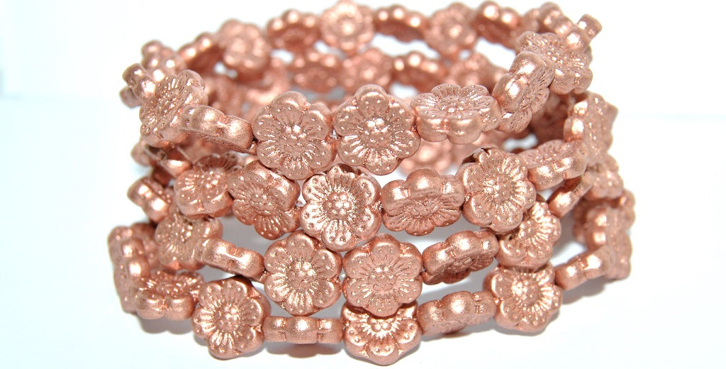 フラワープレスガラスビーズ、ライトヴィンテージコッパー(01770)、ガラス、チェコ共和国〜STRANDED