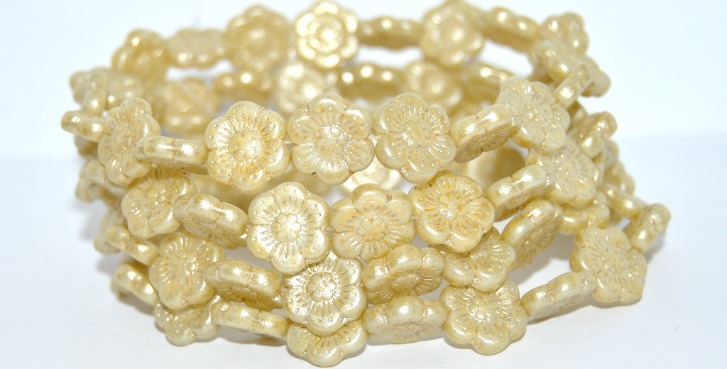 フラワープレスガラスビーズ、ホワイトライトイエローシルバーグレー(02010-34302-34301)、ガラス、チェコ共和国~STRANDED