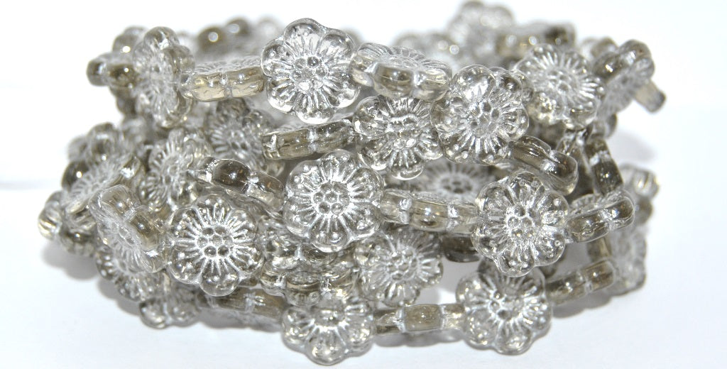 フラワープレスガラスビーズ、グレーホワイトライン(40010-46401)、ガラス、チェコ共和国~STRANDED
