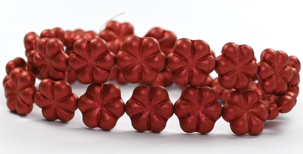 6枚の花びらの花の押しビーズ、溶岩レッド(01890)、ガラス、チェコ共和国〜STRANDED