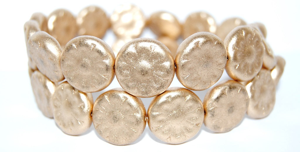 フラットラウンドフラワープレスガラスビーズ、アステカペールゴールド(2301710)、ガラス、チェコ共和国~STRANDED