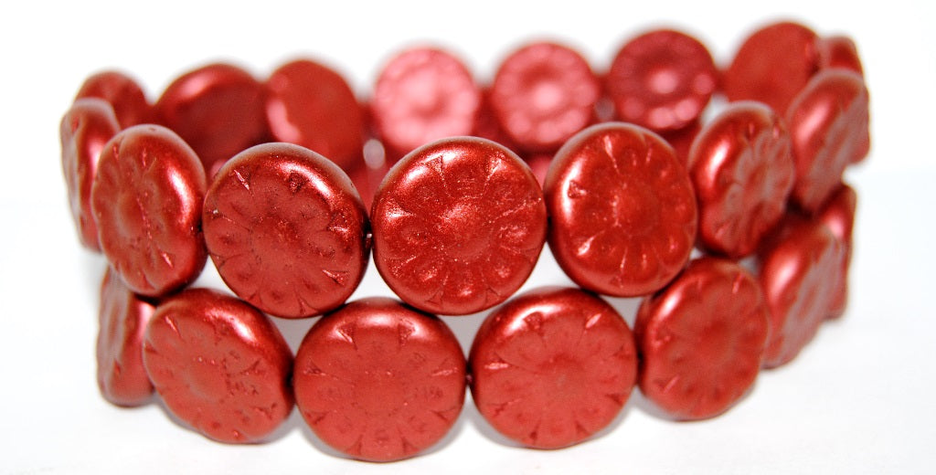 フラットラウンドフラワープレスガラスビーズ、ラバレッド(2301890)、ガラス、チェコ共和国~STRANDED