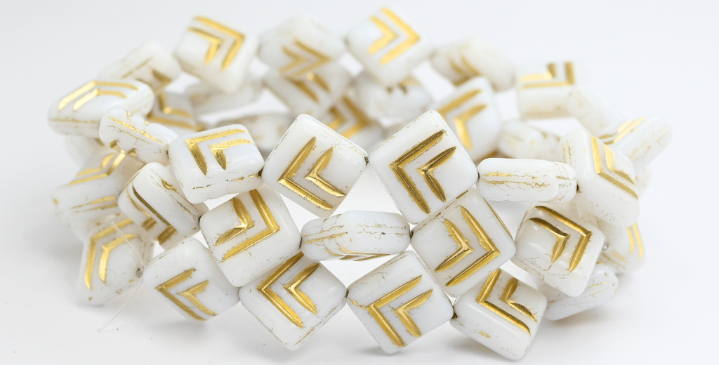 菱形のプレスガラスビーズ、ホワイトゴールドの裏地付き(02010-54202)、ガラス、チェコ共和国