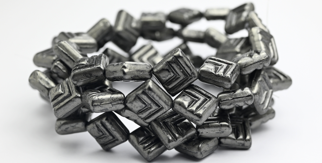 ロンバスプレスガラスビーズ、ブラックシルバースプラッシュ(23980-86790)、ガラス、チェコ共和国