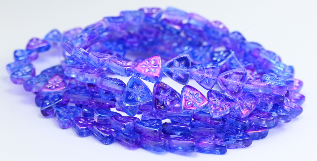 三角形のフラットウィットフラワープレスガラスビーズ、クリスタルグロッシーブルーバイオレット(00030-48102)、ガラス、チェコ共和国