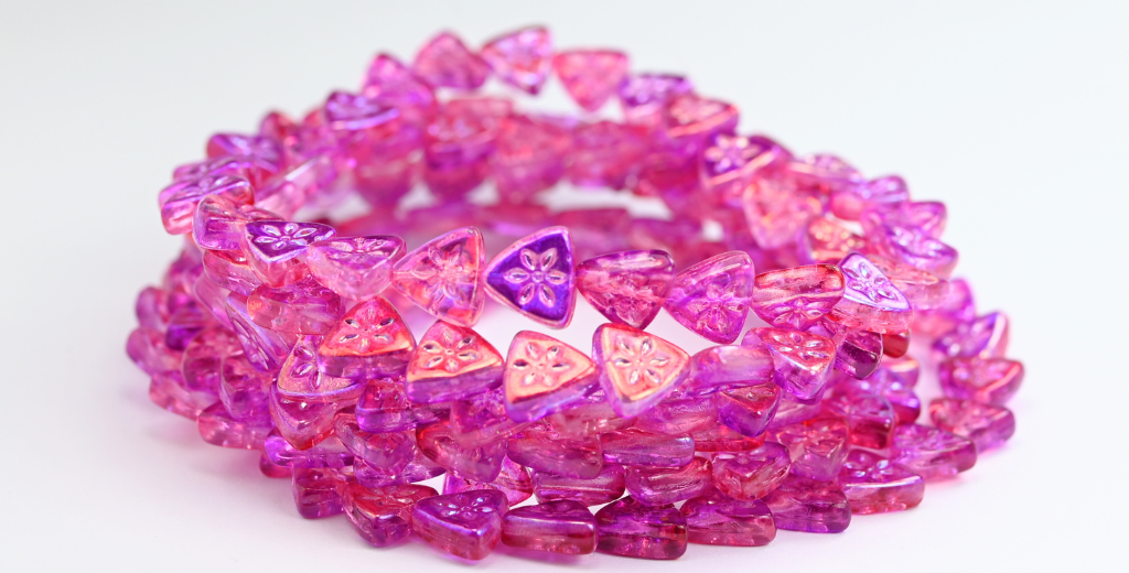 三角形のフラットウィットフラワープレスガラスビーズ、クリスタルグロッシーレッドピンク(00030-48120)、ガラス、チェコ共和国