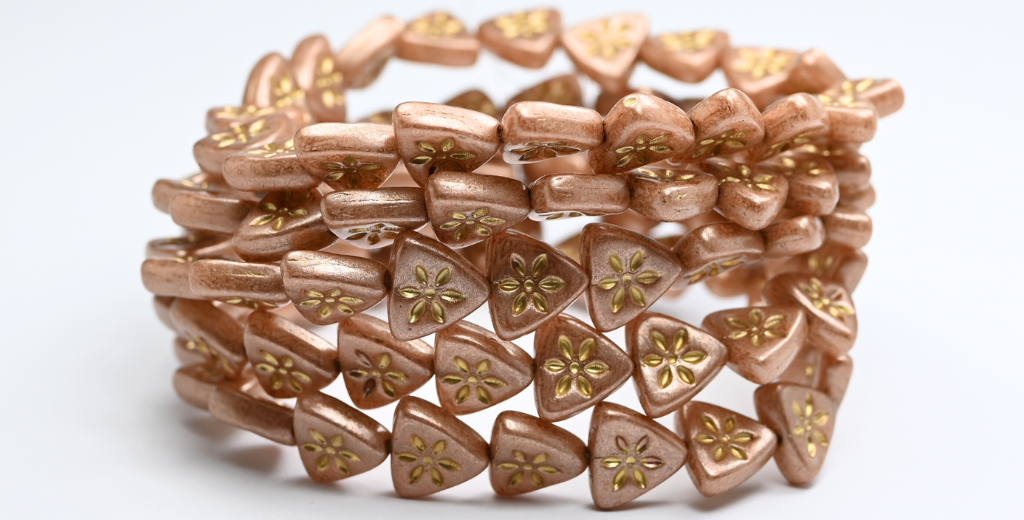 三角形のフラットウィットフラワープレスガラスビーズ、ホワイトピンクベージュゴールドライン(02010-34303-54202)、ガラス、チェコ共和国