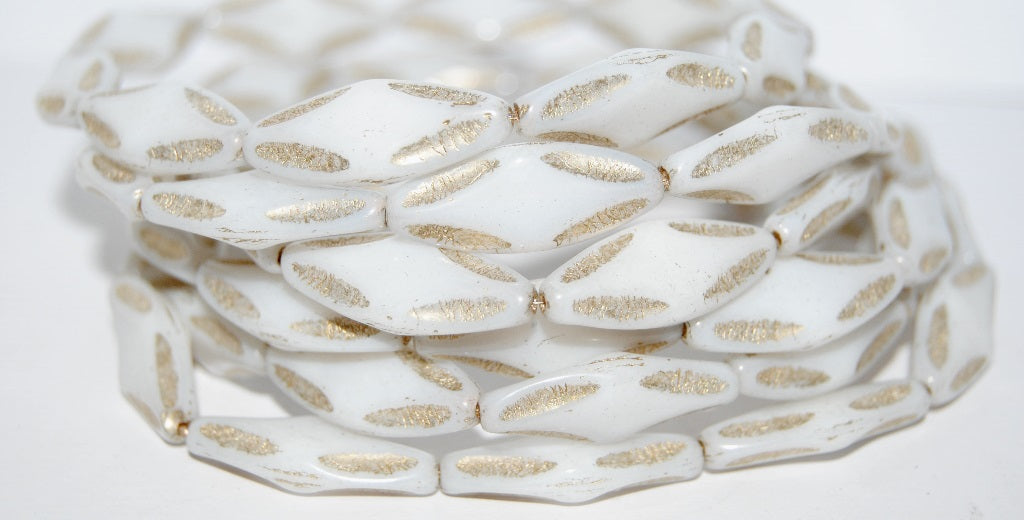 Faceted Oval With Star Pressed Glass Beads, White Gold Lined (2510-02010-54202), Glass, Czech Republic ~ STRANDED