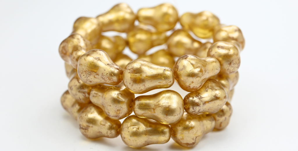梨の実のプレスガラスビーズ、透明ライトトパーズイエローゴールドスプラッシュ(10020-86720)、ガラス、チェコ共和国~STRANDED