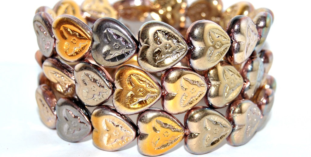 ハートと花のプレスガラスビーズ、クリスタルローズゴールドカプリ2Xサイド(00030-27101-2XSIDE)、ガラス、チェコ共和国