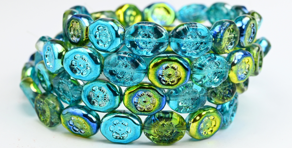 高品質のチェコガラスビーズをプレスし、テーブル研磨したもので、テーブルカットとも呼ばれます。