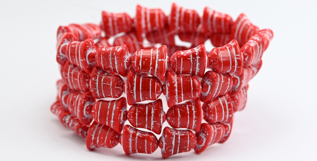 フラットベルビーズ、不透明赤白ライン入り(93200-46401)、ガラス、チェコ共和国
