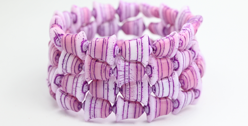 フラットベルビーズ、不透明ピンクパープルライン(740102010-46420)、ガラス、チェコ共和国