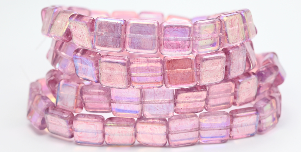 フラットスクエアプレスガラスビーズ、クリスタルライトフクシアピンクAB(00030-34306-AB)、ガラス、チェコ共和国〜STRANDED