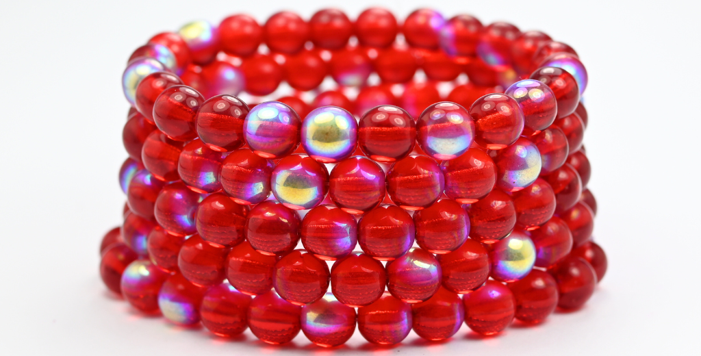 丸型プレスガラスビーズ Druck、ルビーレッド Ab (90080-AB)、ガラス、チェコ共和国 ~ STRANDED
