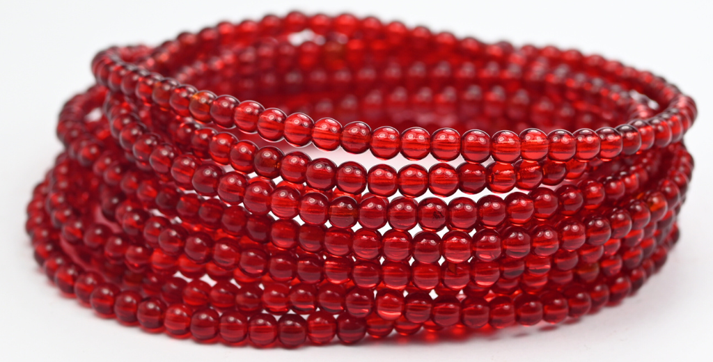 丸型プレスガラスビーズ Druck、透明レッド (90090)、ガラス、チェコ共和国 ~ STRANDED