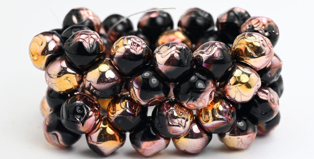 ローズゴールドカプリ(23980-27101)、丸型プレスガラスビーズ(ローズ付き)、ガラス、チェコ共和国