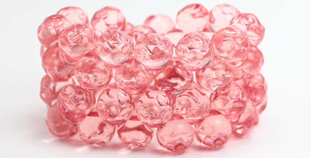 ローズ柄丸型プレスガラスビーズ、透明ピンクライン入り(70120-54321)、ガラス、チェコ共和国
