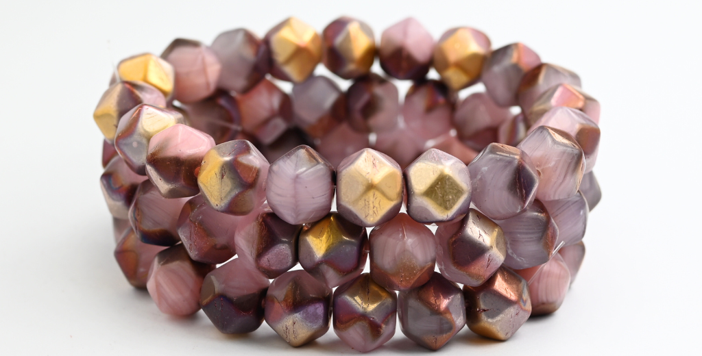 不規則な丸いビーズ、オパールピンクローズゴールドカプリ(72010-27101)、ガラス、チェコ共和国