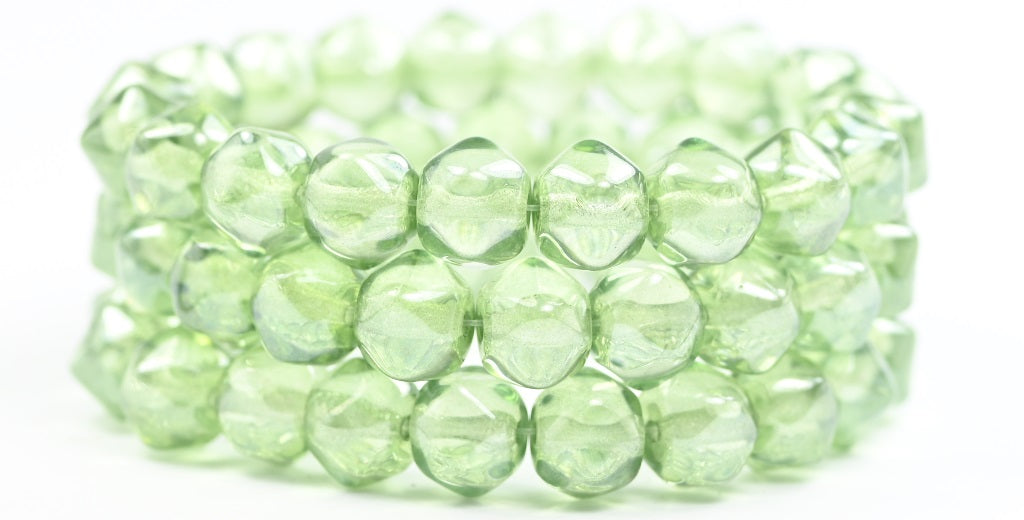不規則な丸いビーズ、クリスタルラスターグリーンフルコーティング(00030-14457)、ガラス、チェコ共和国