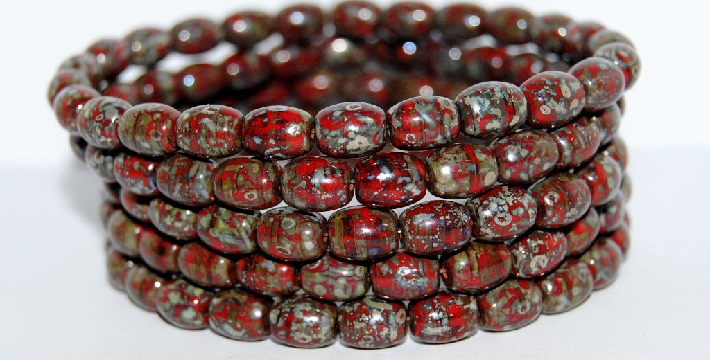 オリーブオーバルプレスガラスビーズ、レッド 43400 (93190 43400)、ガラス、チェコ共和国