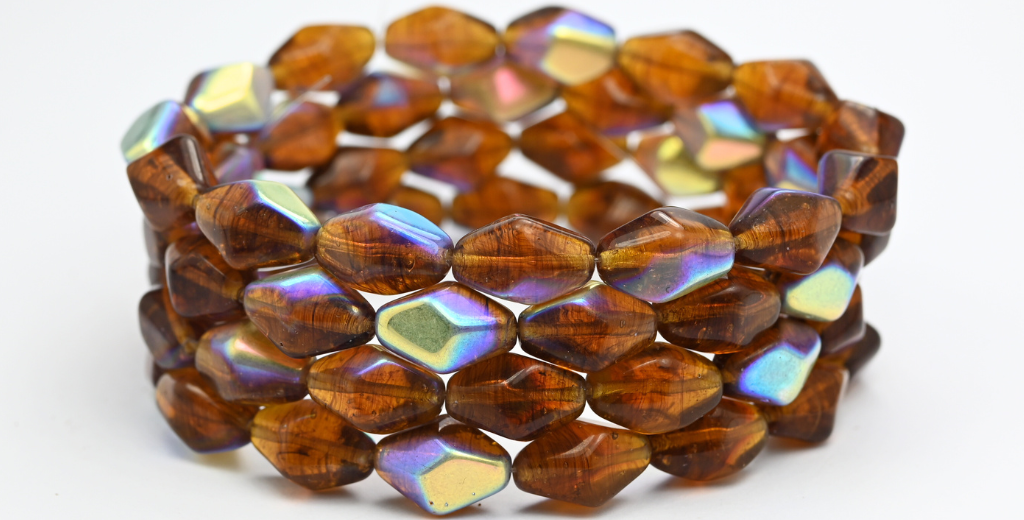 旋盤加工された双円錐形のプレスビーズ、透明ブラウンAB(10210-AB)、ガラス、チェコ共和国
